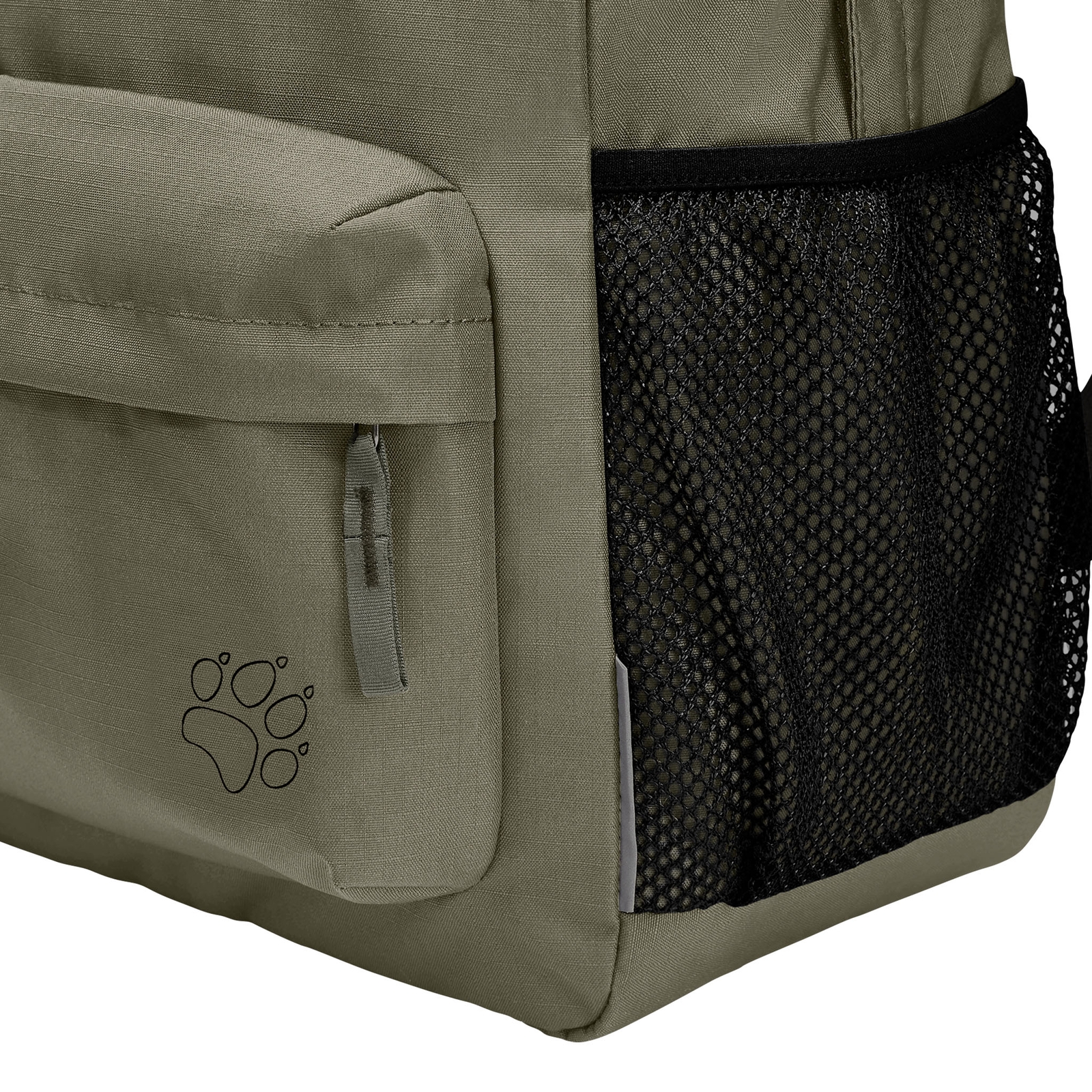 - Ein Frontfach mit Reißverschluss, zwei seitliche Meshtaschen