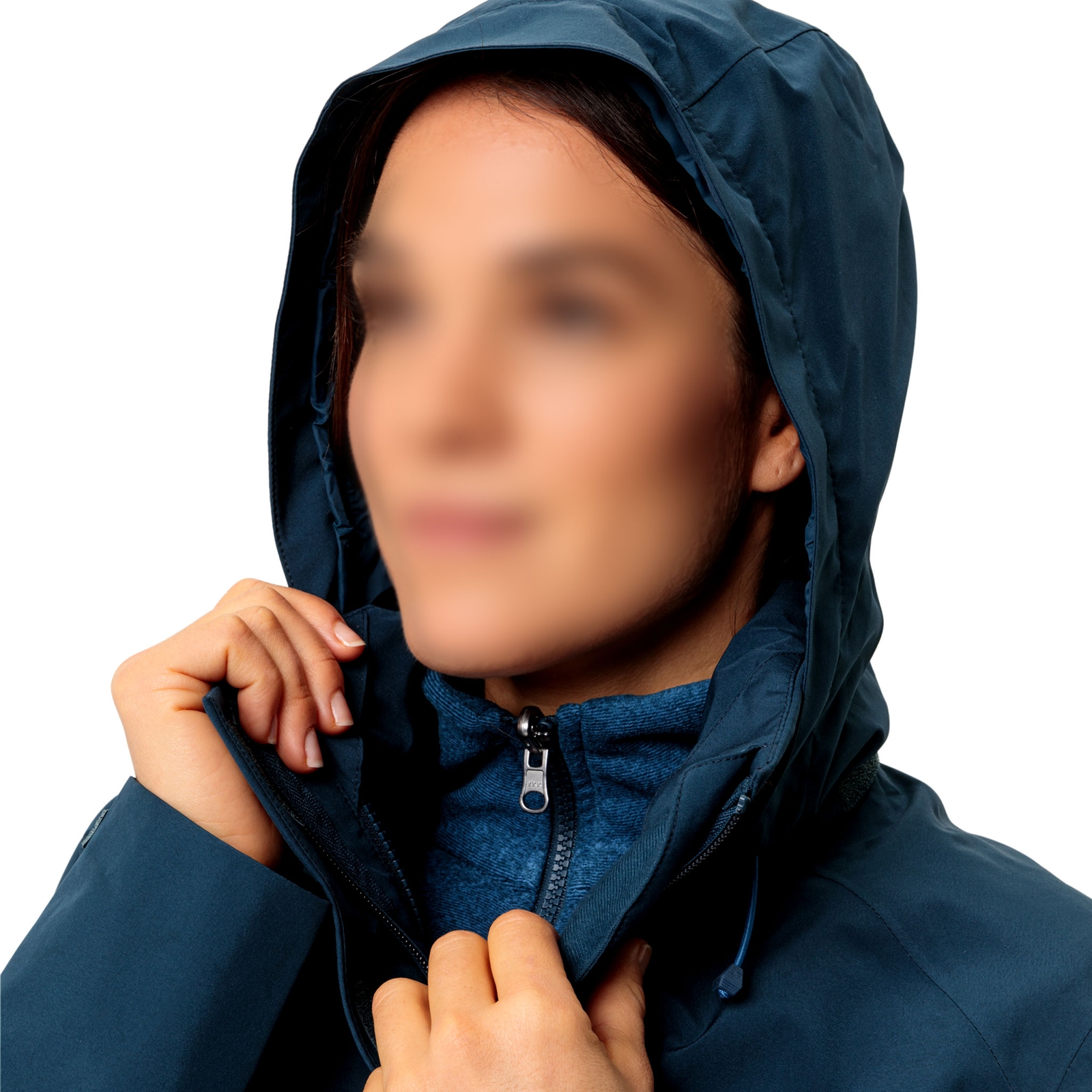 - weiten regulierbare, im Kragen verstaubare Kapuze